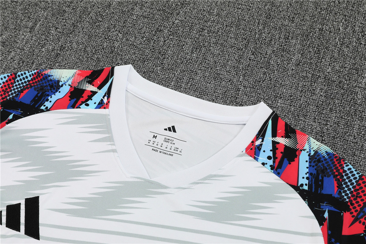 Tenue d’entraînement courte pour homme Real Madrid, blanche et grise, saison 2025/26, alliant style et confort pour vos séances de sport.